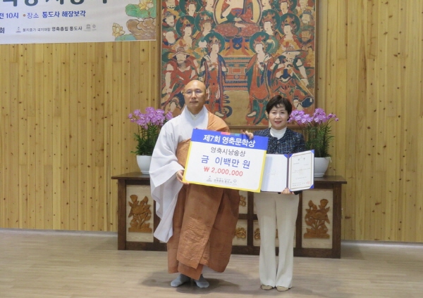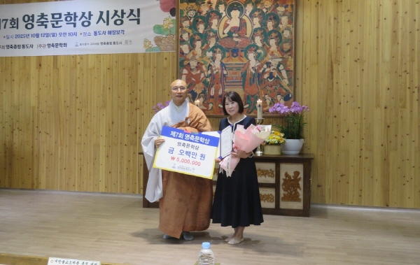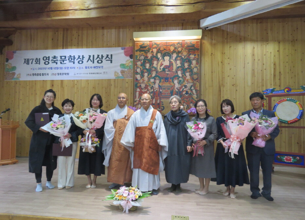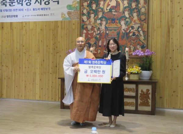 ¹®ÇÐÀεéÀÇ Ã¢ÀÛȰµ¿À» °Ý·ÁÇÏ°í ¹®ÇÐÀÇ ¹ßÀüÀ» Áö¿øÇϱâ À§ÇØ ¿¸®°í ÀÖ´Â Á¦7ȸ ¿µÃ๮Çлó ½Ã»ó½ÄÀÌ 10¿ù12ÀÏ Åëµµ»ç ÇØÀ庸°¢¿¡¼ ¿¸° °¡¿îµ¥ ¹Úº´±Ý ½ÃÀÎÀÌ ¡®Àå°æ°¢ ¶ã¿¡´Â °í·¡°¡ »ê´Ù¡¯·Î ´ë»óÀÇ ¿µ¿¹¸¦ ¾È¾Ò´Ù.¹Úº´±Ý ½ÃÀÎÀº Àå°æ°¢ ¶ã¿¡ ³ªÀüÄ¥±â·Î »õ°ÜÁø ¾Ï°¢È ¼Ó °í·¡¸¦ º¸¸ç ¼öõ³âÀÇ À̾߱⸦ ½ÃÀû »ó»ó·ÂÀ¸·Î µÇ»ì·È´Ù´Â ÁÁÀº Æò°¡¸¦ ¹Þ¾Ò´Ù.À̹ۿ¡µµ ¿µÃ๮Çл󿡴 ±èÁö¿ø ½ÃÀÎÀÇ ¡®¼Ò¸Ëµ¹¿¡ ÇÉ µ¿¹éÀº ºÓ¾ú´Ù¡¯¿Í À¯Áø¼ÀÇ µ¿È ¡®µ¿ÀÚ½ÂÀÇ ¼Ò¿ø¡¯ÀÌ ¼ö»óÇßÀ¸¸ç, ¿µÃ๮ÇÐÀÛ°¡»óÀº ±è½ÂºÀÀÇ ½ÃÁ¶ ¡®½ÊÀ°¸¸ µµÀÚ ¾Õ¿¡ ¼´Ù¡¯, ±èÈñÀÚÀÇ ¼öÇÊ ¡®Àεî-²¨ÁöÁö ¾Ê´Â µîºÒ¡¯ÀÌ, ¿µÃà½Ã³¶¼Û»óÀº ÃÖÁ¤ÀÚ ½ÃÀÎÀÌ ¼ö»óÀÇ ¿µ¿¹¸¦ ¾È¾Ò´Ù.¿µÃàÃѸ² Åëµµ»ç°¡ ÁÖÃÖÇÏ°í ¿µÃ๮ÇÐȸ°¡ ÁÖ°üÇÑ À̹ø ½Ã»ó½Ä¿¡¼ ´ë»ó ¼ö»óÀÚ¿¡°Ô´Â »ó±Ý 1000¸¸¿ø, ¿µÃ๮ÇлóÀº »ó±Ý 500¸¸¿ø, ÀÛ°¡»ó°ú ½Ã³¶¼Û»ó¿¡´Â »ó±Ý 200¸¸¿øÀÌ °¢°¢ ¼ö¿©µÆ´Ù.¿µÃ๮ÇÐȸ Á¤¿µÀÚ È¸ÀåÀº Àλ縻À» ÅëÇØ ¡±ÁÁÀº ÀÛǰÀÇ ½ÃÀÛÀº °£ÀýÇÔÀ̰í, ÀÛ°¡ ¿©·¯ºÐÀÇ ¼Ò¸Áº¸´Ù ´õ Áø½ÇÇÑ °£ÀýÇÔÀÌ °¡µæÇÔÀ¸·Î ÁÁÀº ÀÛǰÀÌ Åº»ýÇÏ´Â °ÍÀÌ ¾Æ´Ñ°¡ »ý°¢ÇÑ´Ù¡°¸é¼ ¡±Åëµµ»ç°¡ ÁÖ´Â ¹®ÇÐÀû »ó»ó·Â°ú âÁ¶ÀûÀÎ °ø°£ÀÌ ÁÁÀº ÀÛǰÀÌ Åº»ýÇϴµ¥ ¸¹Àº µµ¿òÀÌ µÈ´Ù¡°°í ¸»Çß´Ù.ÀÌ¾î ¡±¿µÃà»êÀ̶ó´Â ÀÚ¿¬ÀÌ ÁÖ´Â ¿µ°¨À» ¾ò¾î¼ ³»³â¿¡´Â ´õ¿í ÁÁÀº ÀÛǰÀÌ Åº»ýÇϱ⸦ ¹Ù¶ó¸ç, ÀÌ·¸°Ô ÀÚ¿¬°ú ºÒ±³¿Í ¹®ÇÐÀ» À̾îÁÖ´Â ±âȸ¸¦ ÁֽŠÁ¾Á¤¿¹ÇÏ¿Í Çö´ö½º´ÔÀ» ºñ·ÔÇÑ Åëµµ»ç »çºÎ´ëÁß¿¡ °¨»çÇÑ ¸¶À½À» ÀüÇÑ´Ù¡°°í ÀλçÇß´Ù.¿µÃàÃѸ² Åëµµ»ç ÁÖÁö Çö´ö½º´ÔÀº Ãà»ç¿¡¼ ¡±Á¾Á¤¿¹ÇÏ ½º´ÔÀÇ °ü½É°ú Áö¿ø¼Ó¿¡ ¿ì¸® ¹®ÇÐÀÇ ¹ßÀüÀ» ÇÔ²²Çϰí ÀÖ´Â ¿µÃ๮Çлó ½Ã»ó½Ä¿¡ Àü±¹ÀÇ ¹®ÇÐÀεéÀÌ Âü¿©ÇØ Áֽðí ÁÖ¿Á°°Àº ÀÛǰÀ» ÃâÇ°ÇØ Áֽɿ¡ °¨»çµå¸°´Ù¡°¸ç ¡±Ã¥À» ÅëÇØ¼ ´Ù¾çÇÑ Áö½Ä°ú Àο¬À» ¸¸³ªµí ¹®ÇÐÀ̶ó´Â ¼ÒÁßÇÑ °¡Ä¡°¡ ½É¼ºÀ» Àß ¹àÇô¼ ¸ðµç ºÐµéÀÇ ½É¼ºÀÌ ¹à¾ÆÁ³À¸¸é ÇÑ´Ù¡°°í Ãà»çÇß´Ù.¿µÃ๮ÇлóÀº ¿À·£±â°£ âÀÛȰµ¿°ú ¹®´Ü Ȱµ¿¿¡ ºÀ»ç¿Í Çå½ÅÀ¸·Î ³ë·ÂÇØ¿Â ¹®ÇÐÀεéÀÇ Ã¢ÀÛ ÀÇ¿åÀ» °íÃë½ÃŰ°í ¿ì¸® ¹®ÇÐÀÇ ¹Ì·¡¸¦ °³Ã´ÇØ ³ª°¥ ¿ª·®ÀÖ´Â ÀÛ°¡¸¦ ¹ß±¼, ±× ³ë°í¿¡ º¸´äÇϰíÀÚ Á¦Á¤µÅ ½Ã»óÀ» À̾î¿À°í ÀÖ´Ù.ÇÑÆí À̳¯ ½Ã»ó½Ä¿¡´Â Á¶°èÁ¾ Á¾Á¤¿¹ÇÏ ÁߺÀ ¼ºÆÄ´ëÁ¾»ç¿Í Åëµµ»ç ÁÖÁö Çö´ö½º´Ô, À¯³ª ¿µÀϽº´ÔÀ» ºñ·ÔÇÑ ÁÖ¿ä ¼ÒÀÓÀÚ ½º´Ôµé°ú ¹®ÇÐÀεéÀÌ Âü¼®ÇÑ °¡¿îµ¥ ÁøÇàµÆ´Ù.Ãâó : ºÒ±³½Å¹®(http://www.ibulgyo.com)