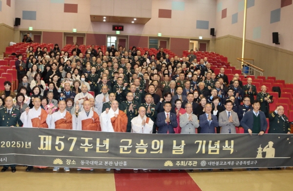 Á¶°èÁ¾ ±ºÁ¾Æ¯º°±³±¸°¡ ¡®±º½ÂÀÇ ³¯¡¯À» ¸Â¾Æ Çѱ¹ºÒ±³ÀÇ ¹Ì·¡¸¦ Áû¾îÁú ÀþÀº ±ººÒÀÚ ¾ç¼º¿¡ ´õ¿í ¸ÅÁøÇÒ °ÍÀ» ¼¿øÇß´Ù. Á¶°èÁ¾ ±ºÁ¾Æ¯º°±³±¸(±³±¸Àå ¹ý¿ø½º´Ô)´Â 11¿ù27ÀÏ µ¿±¹´ë º»°ü ³²»êȦ¿¡¼ ¡®Á¦57Áֳ⠱º½ÂÀÇ ³¯ ±â³ä½Ä¡¯À» ºÀÇàÇß´Ù. À̳¯ ±â³ä½ÄÀº ¡®±º½Â ÆÄ¼Û 57Áֳ⡯°ú ´õºÒ¾î ¡®±ºÁ¾Æ¯º°±³±¸ Ãâ¹ü 20Áֳ⡯À» ÀÚÃàÇÏ´Â ¹ý¼®ÀÌÀÚ ¡®Æ÷±³ÀÇ È²±Ý¾îÀ塯ÀÎ ±¹±ºÀ庴µéÀ» À§ÇÑ Àü¹ý ¿ø·ÂÀ» »õ·Ó°Ô ´ÙÁö´Â ÀÚ¸®·Î ¸¶·ÃµÆ´Ù.